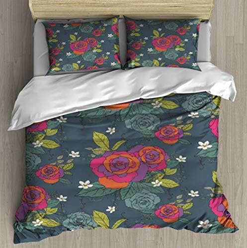 Mefinia Floral Bedding Duvet Cover Set With Zipper Closure 90x90 Flower Printed Lightweight Down Comforter Quilt Cover Set Home Kitchen